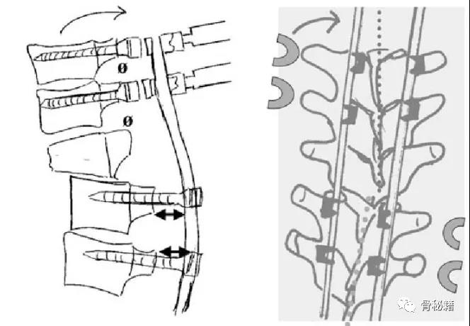 3、若存在左右侧的位移,可让螺钉的开口侧面向近端脱位的一侧4、将棒塑性有一些弧度,先锁定远端后,利用棒的弹性来逐渐锁定近端达到复位