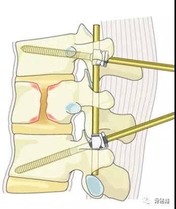 1、远端植入椎弓根螺钉,保留一些距离2、近端植入到底的椎弓根螺钉