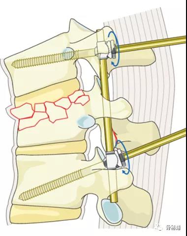 2、应用schanz钉进行后方的闭合来恢复脊柱前柱的高度