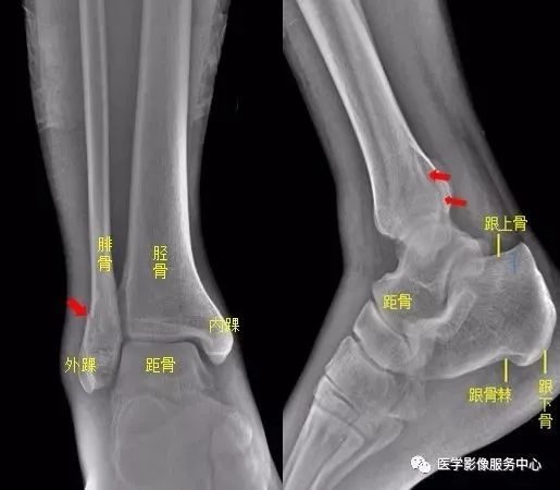 小妙招:嘱家属过一周~两周再复查,若是骨折,可见新生骨生长。(此患者就是踝关节扭伤,踝关节正侧位未见异常,加拍足正位时发现外踝骨折)