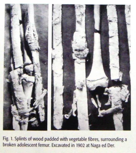 Hippocrates 及其弟子采用徒手或机械整复骨折,木质夹板固定整复后骨折的位置。