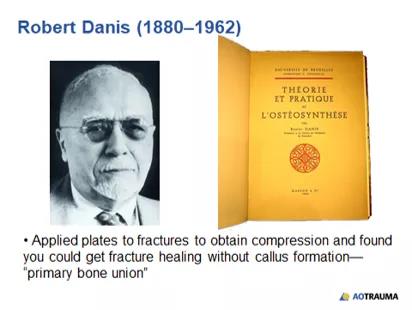 Robert Danis 则开始了从木匠到医生的伟大之旅,他仔细研究了骨折的愈合过程,发现如果骨折的两端完全恢复解剖位置并且在断端施加压力,愈合过程中不会形成骨痂而直接愈合,这被 Danis 称为「自焊接」,也就是后来所谓的一期愈合。