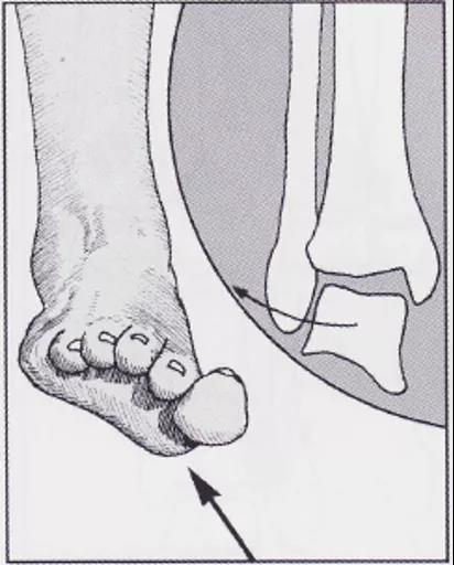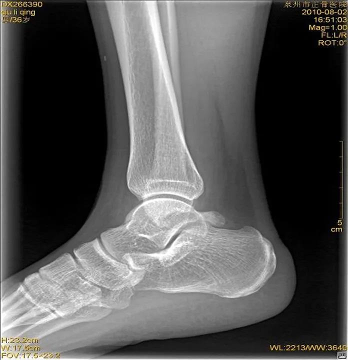 - 中度:中度功能丧失,踝关节不能背屈,行走时跛行,局部肿胀、压痛