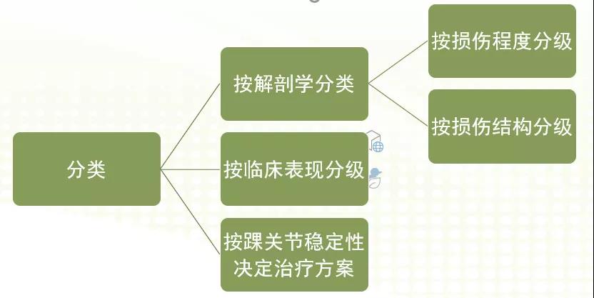 按治疗方法分类:通过临床查体明确踝关节的稳定性,依据治疗方法的不同分类