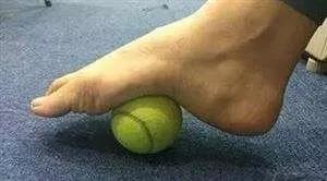 坐位踩球。找一找椅子坐下,光脚将网球进行360°的旋转操控,锻炼对网球的操控能力。