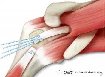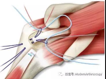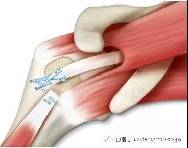 6. LHB远端的固定不需要特殊的手术技能,容易掌握。通过两条穿骨隧道,即可完成固定。