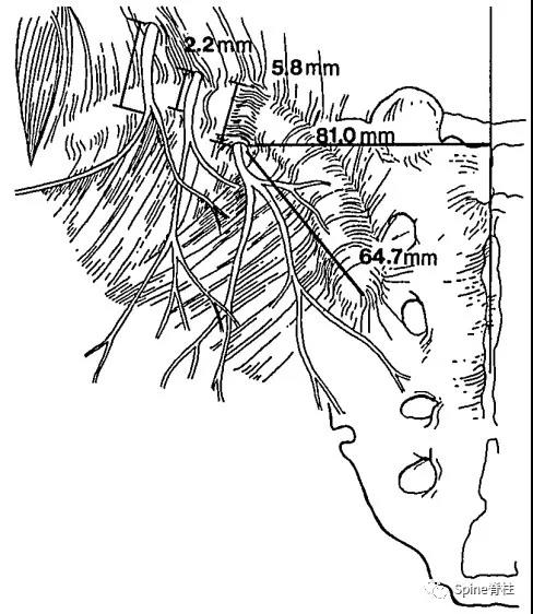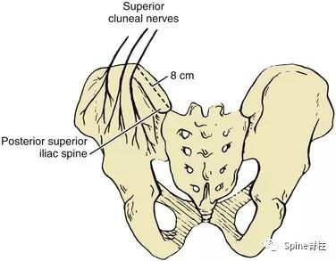 图:臀上皮神经经髂骨嵴通过,其内侧支距髂后上棘约8cm