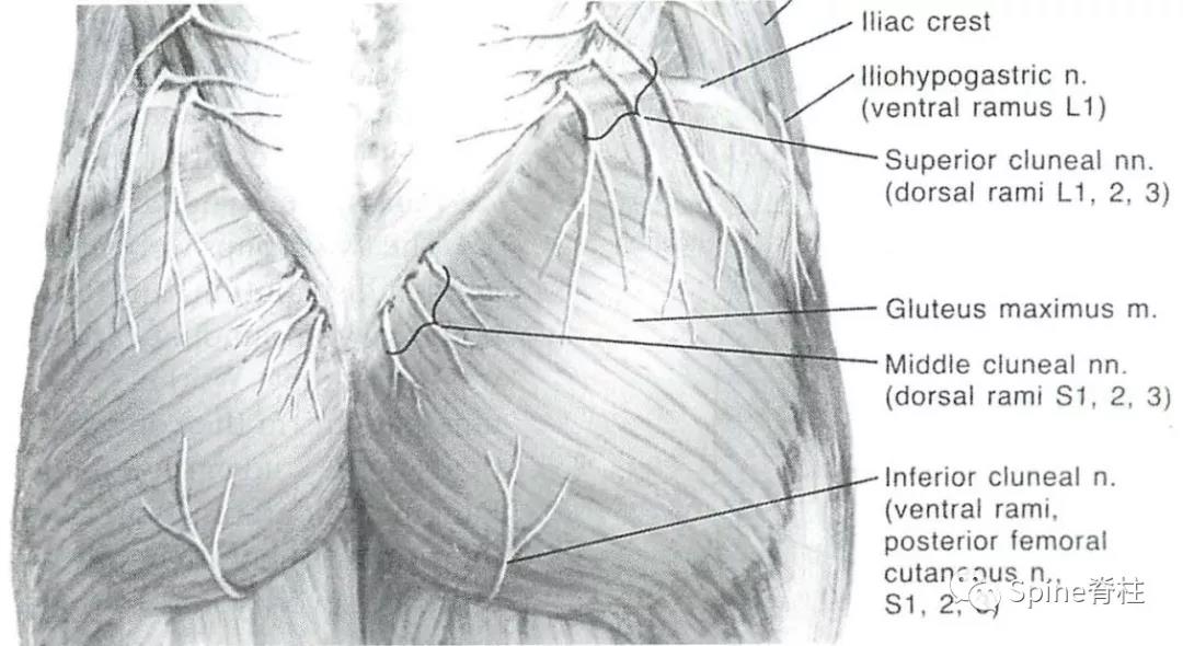 图:臀上皮神经由L1-3的后支组成(dorsal rami L1,2,3)