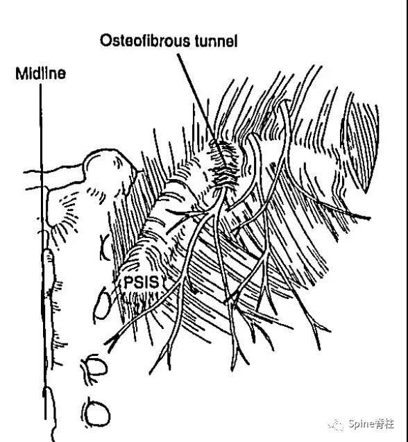 图:PSIS为髂后上棘,Osteofibrous tunnel 为骨纤维通道