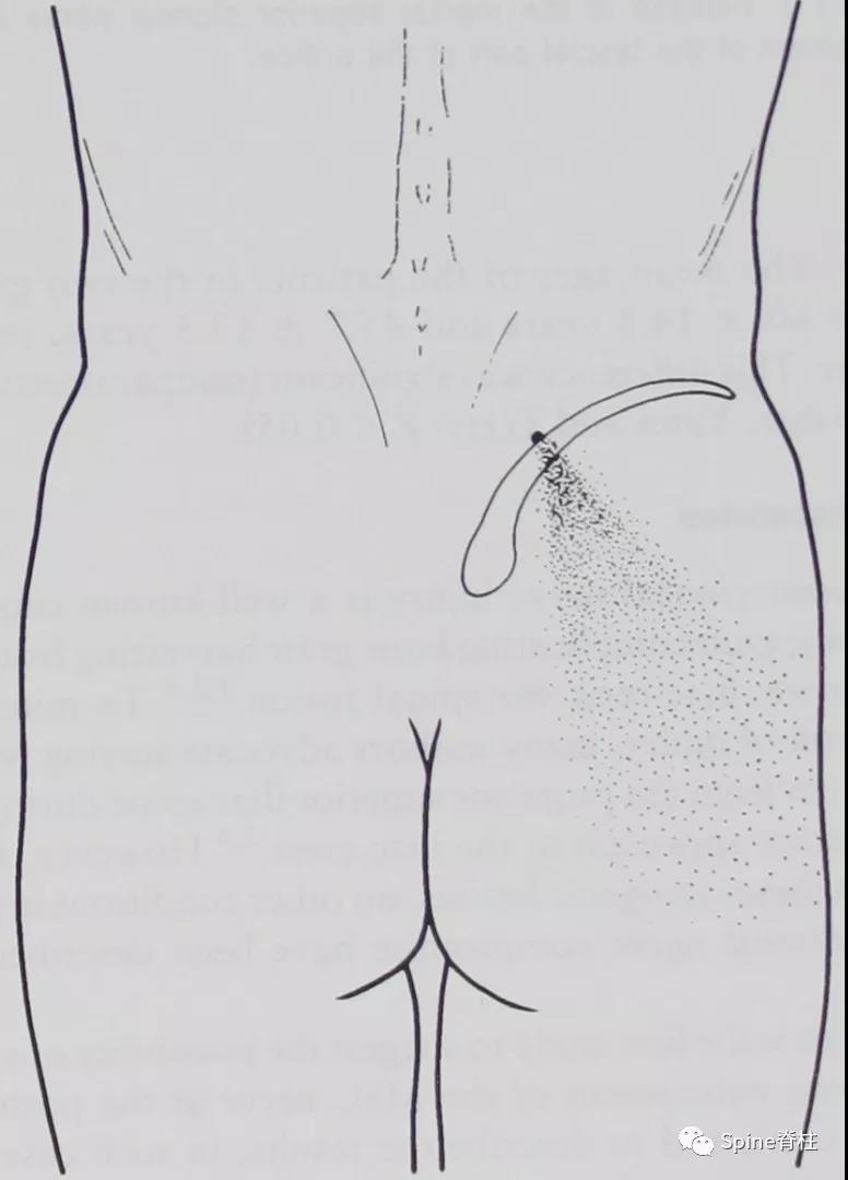 图:臀上皮神经卡压综合征卡压处及疼痛部位