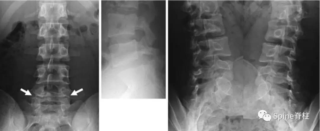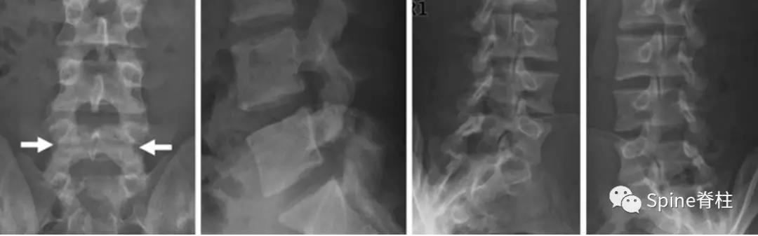 图:L4全椎板裂16岁男孩,3年严重腰痛,后伸受限其中L5椎体骶化
