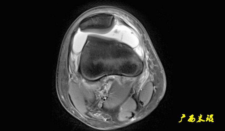 MRI检查是最常用的评估髌股关节软组织和滑车软骨的检查,在发现MPFL损伤时具有较高的敏感性和准确性,其特征性表现包括X线不能发现的软骨损伤及髌骨内侧面和股骨外侧髁的骨挫伤。MRI也可用于评估髌骨滑车指,测量髌骨高度等。