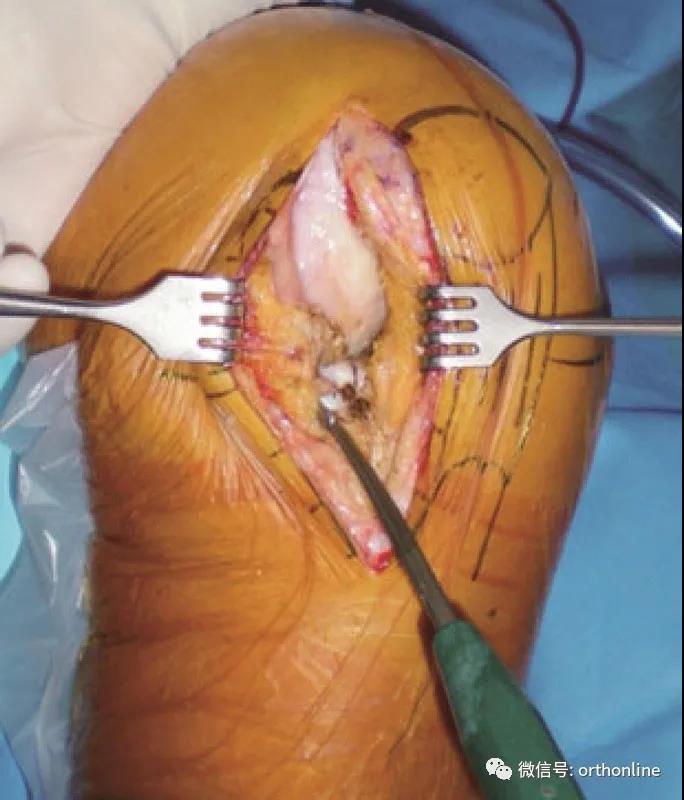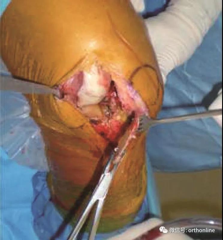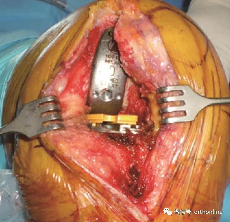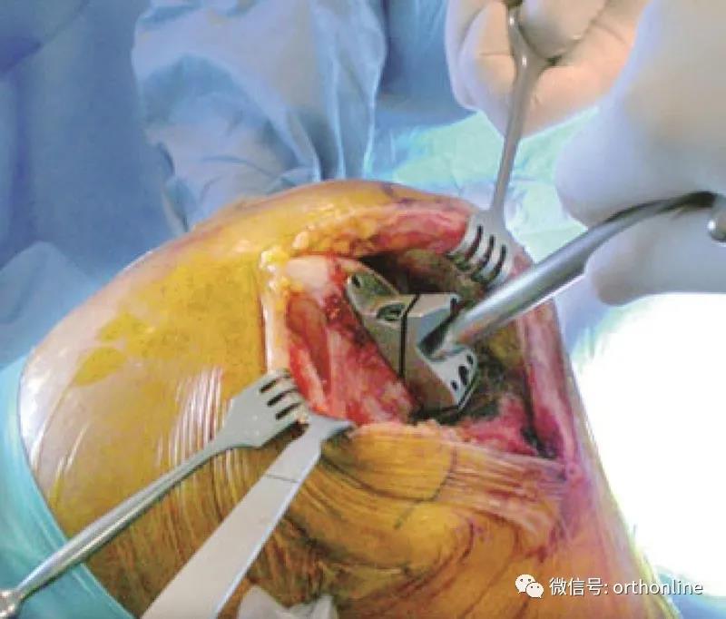 胫骨水平截骨垂直力线,纵截骨沿股骨外侧髁的内缘