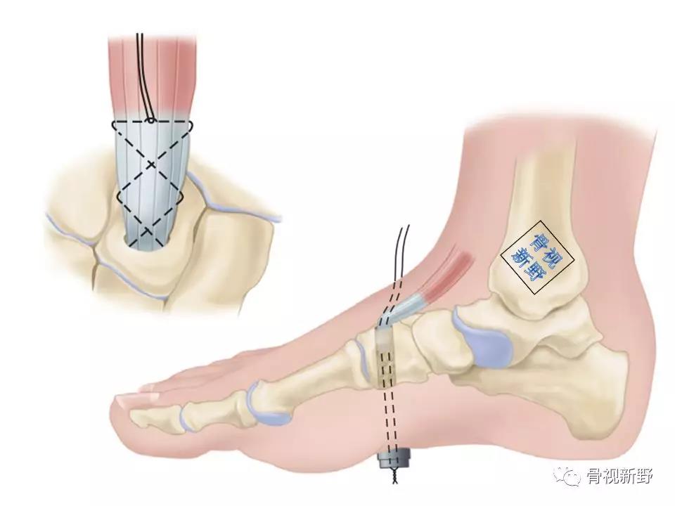 Krackow 和 Cohn 发明了将肌腱或筋膜穿过骨孔的技术—“中国指套”式技术。