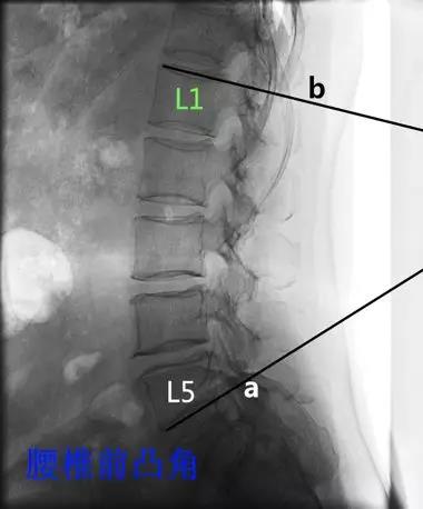 - 腰椎前凸角:即L1终板上缘连线与L5终板下缘连线的交角。