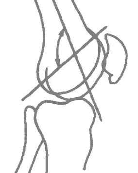 - 股骨髁干角:膝关节侧位片股骨干纵轴线与股骨髁纵轴线的后方夹角。