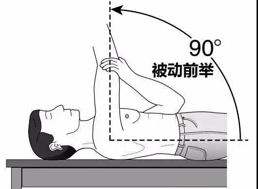 3.冷敷痛区:3~6次/d,每次20---30min。4.被动活动练习:术后第1天开始被动活动肩关节前屈和体侧外旋,术后第3~4天开始被动活动肩关节外展、内旋及外展外旋。肩关节前屈:患者应平卧于床上,伸直患侧上臂,健侧手扶患肢肘部。在患肢不用力的情况下,由健侧手用力使患肢尽可能上举达最大角度,并在该角度维持1分钟。