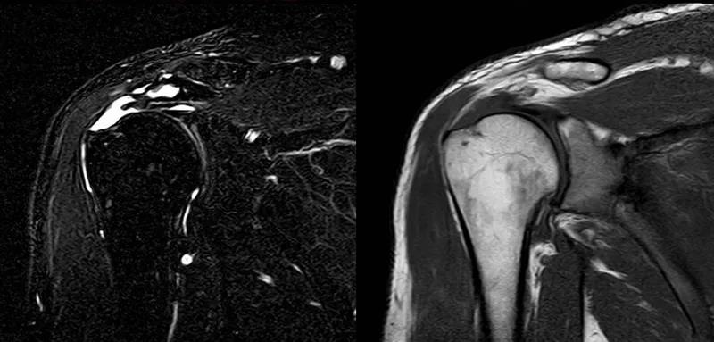 2、MRI检查MRI目前是诊断肩袖疾病中最常用的检查,可以直观的观察肩袖肌腱。