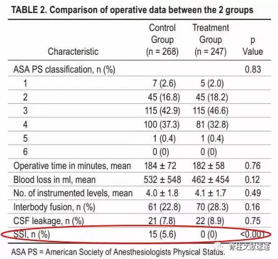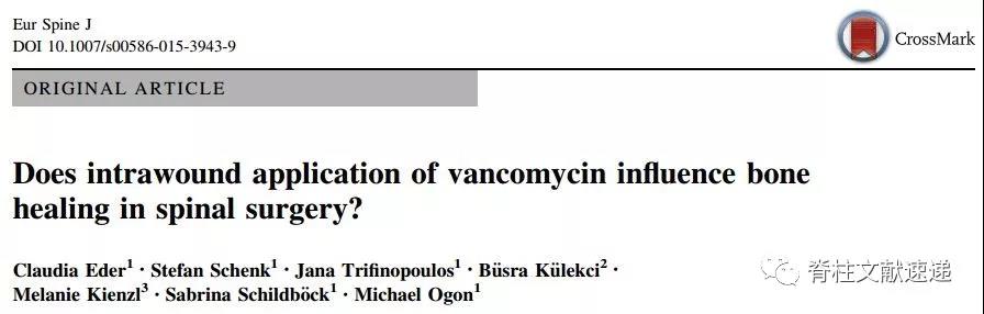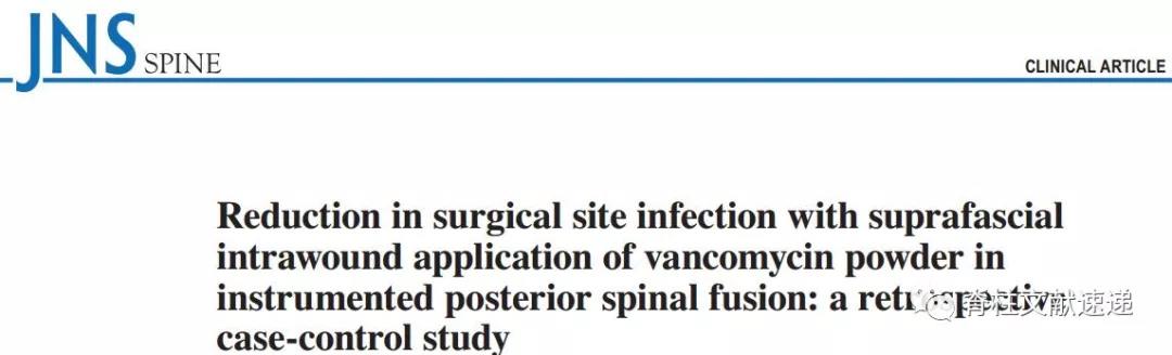 文献1:应用万古霉素粉末减少脊柱融合术后手术部位感染:回顾性病例对照研究(分析万古霉素粉末治疗组发生与万古霉素有关的局部及全身并发症)