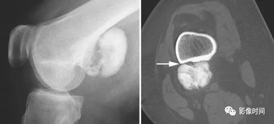 图 12 压迫性骨缺损:骨软骨瘤