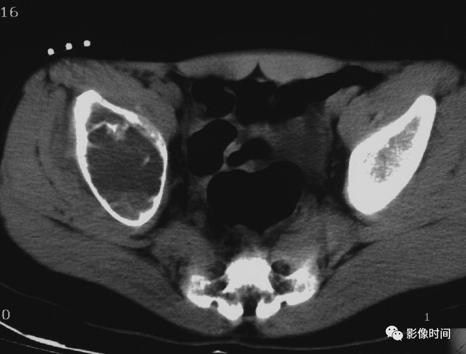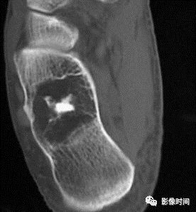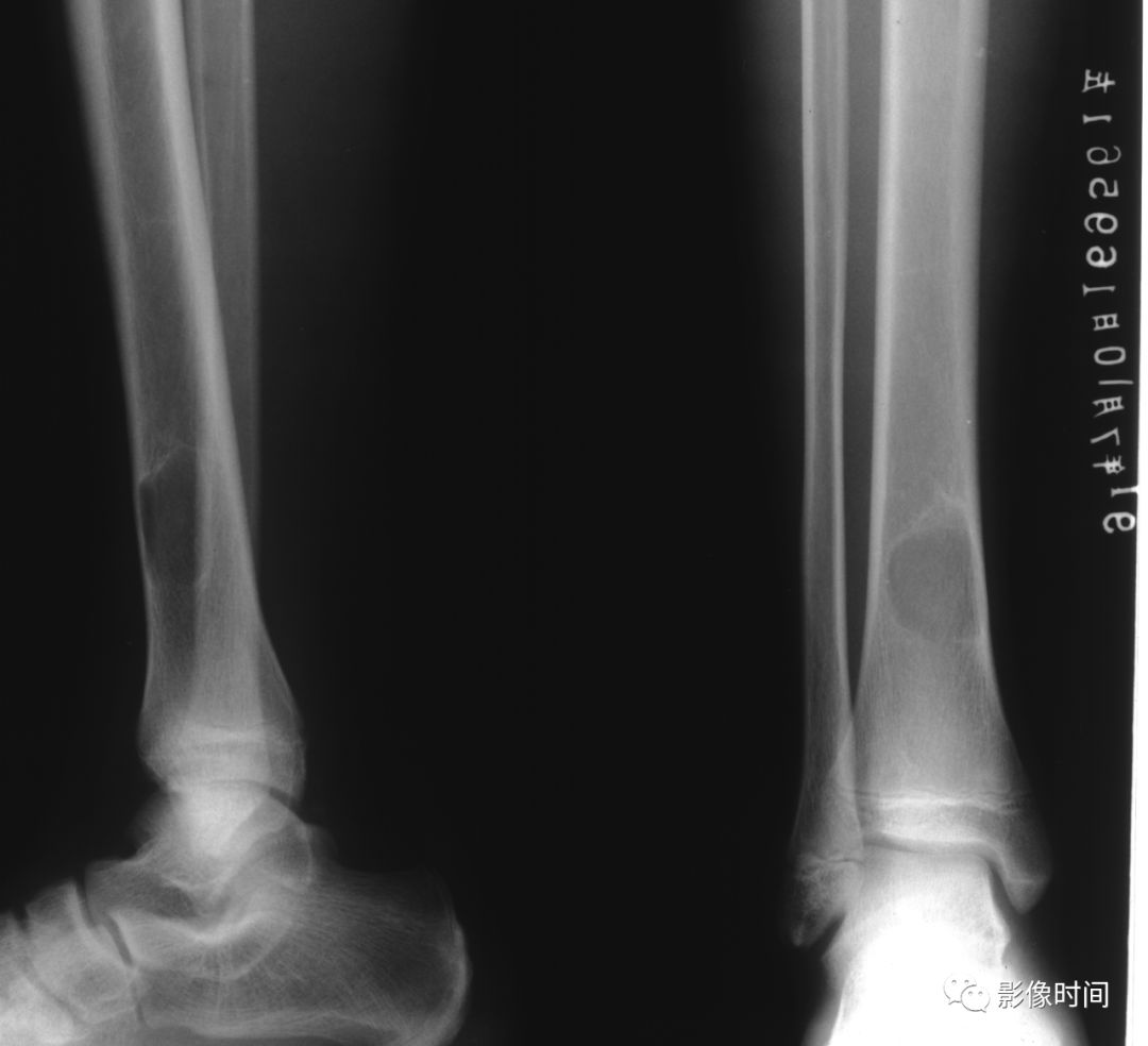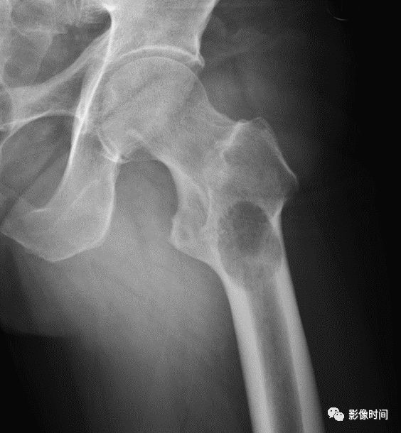 图 3 地图样破坏:骨内脂肪瘤