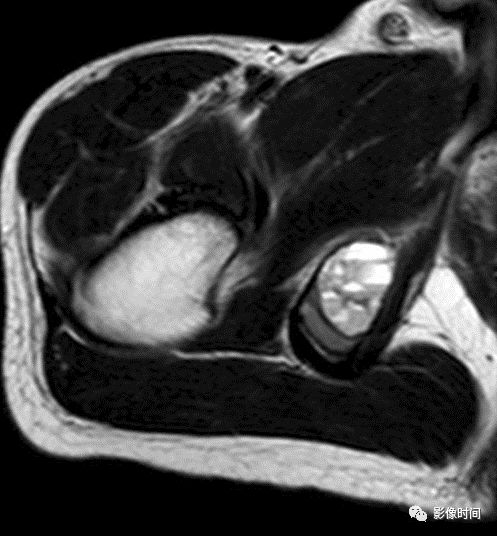 图 34 肿瘤内液-液平面:骨内腱鞘囊肿