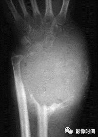 图 6 膨胀性破坏:骨巨细胞瘤