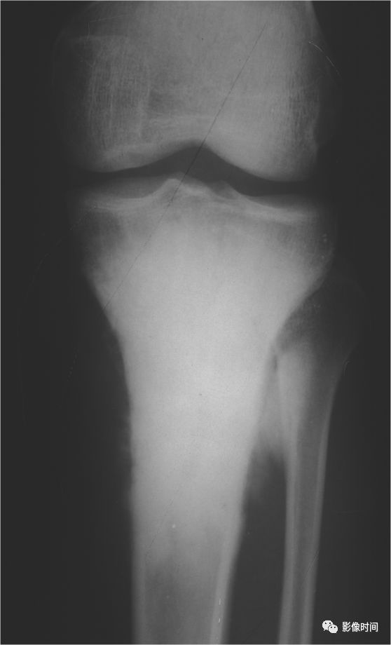 图 15 骨骺板破坏:骨肉瘤