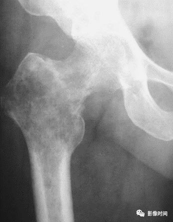 图 4 地图样破坏:骨转移瘤