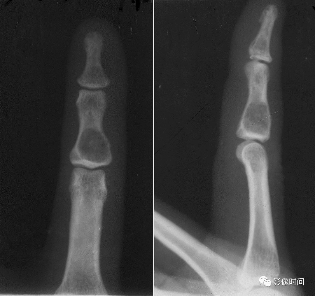 图 7 膨胀性破坏:内生软骨瘤