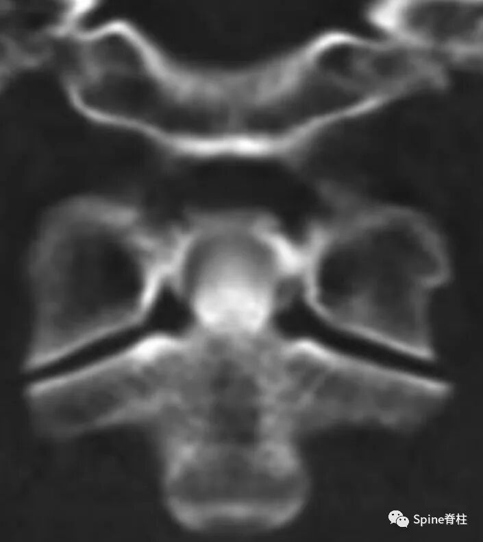 颈椎CT冠状位重建显示犹如齿突戴上了一顶皇冠故得名齿状突加冠综合征