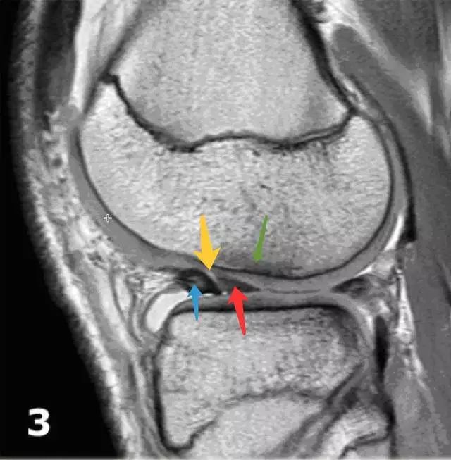 图 5 正常后交叉韧带和半月板股骨前后韧带