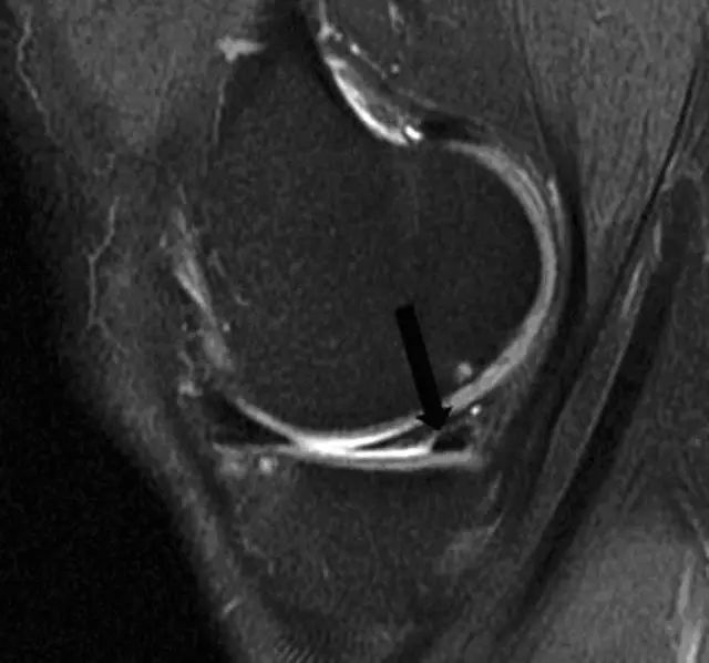 图 14 半月板根部撕裂和半月板膨出