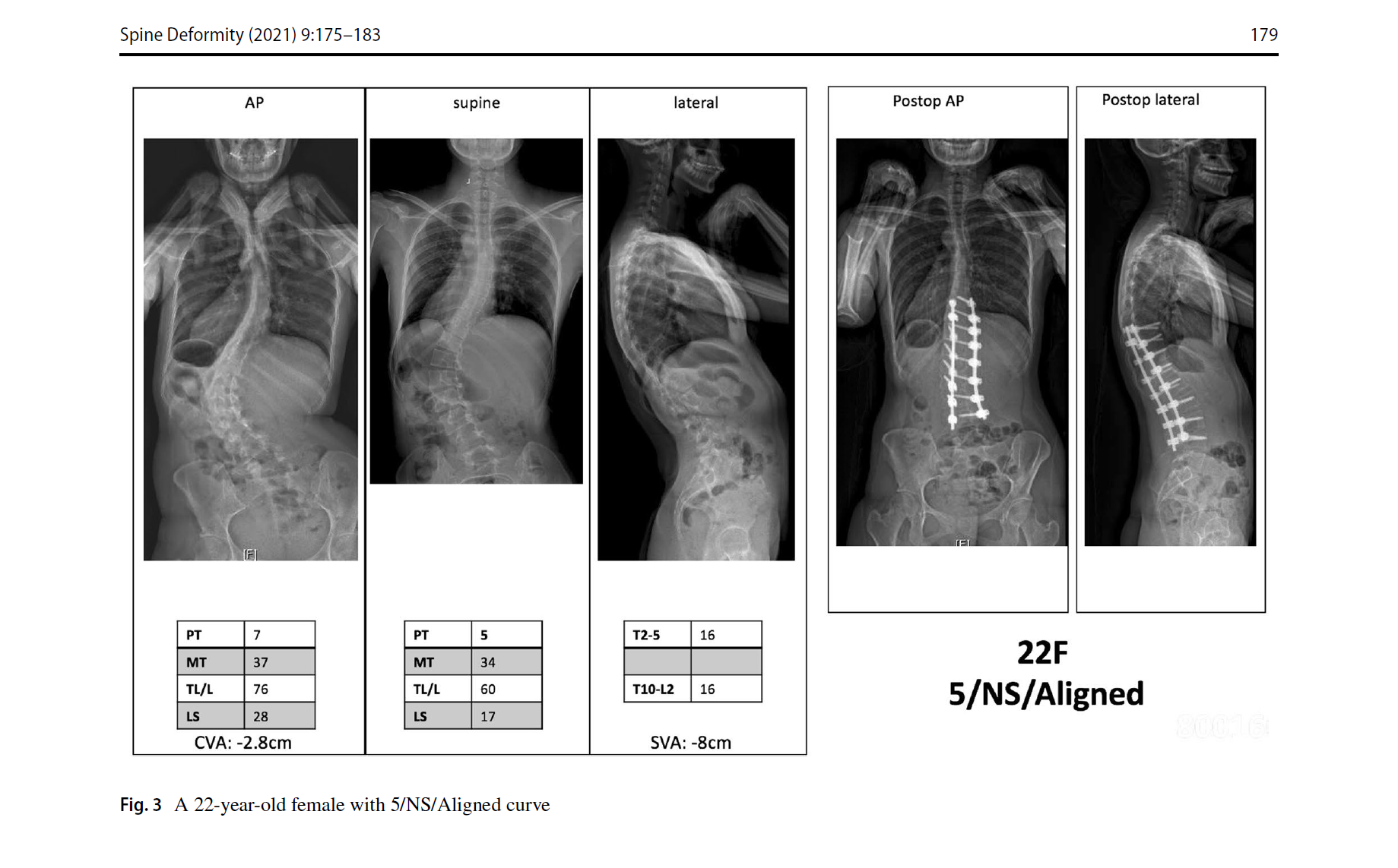 3. 脊柱平衡修正包括了冠状位、矢状位和冠矢合并的平衡状态。标准与SRS基本一致,冠状位失衡CVA≥40mm,矢状位失衡SVA≥40mm。排列组合,共有Aligned、Sag Malalign、Cor Malalign、or Comb Malalign 4种类型。如果脊柱失衡,需要按SRS标准矫正。
