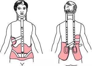 除了我们上述常见的肢体牵引之外,有学者也把胸腰段支具,尤其是颈胸腰联合支具也称为牵引(Traction brace)(图 14)。用于矫正侧弯畸形或治疗颈胸椎先天性及退行性疾病。