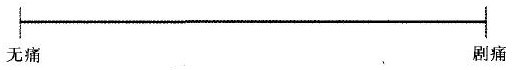 在纸上划一条长线或使用测量尺(长为10 cm),一端代表无痛,另 一端代表剧痛(如图)。让患者在纸上或尺上最能反应自己疼痛程度的位置划“X"。评估者根据患者划“X”的位置估计患者的疼痛程度。