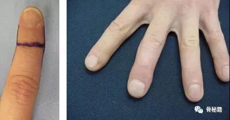 手指屈肌面上直线切口导致的限制性疤痕示例