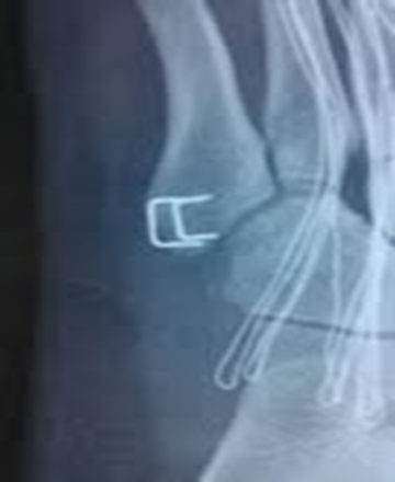 骑缝钉固定固定强度可靠,且操作方便,有效避免了螺钉操作时骨折块爆裂的风险,其弊端有: