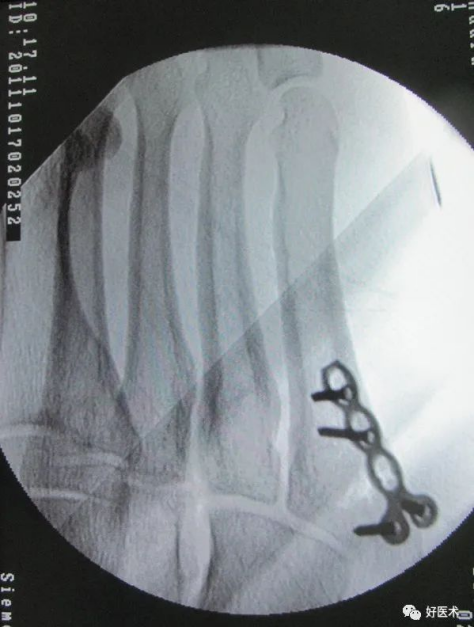 微型锁定钢板螺钉固定固定坚强,术后可以佩戴前足减压支具早期活动 ,适用于骨块较大,要求较高的患者。弊端是费用较高,需二次取出。