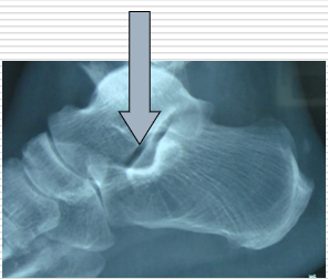 - 3)跟骨的高度降低,跟距高、骰骨至底线高、舟骨至底线高和跟骨高。降低≥2cm o