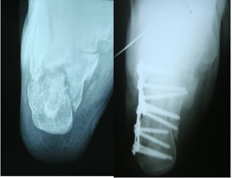 非手术方法难以使其恢复正常的功能,因为跟骨畸形愈合将发生。以致跟骨关节面未获得复位、跟骨仍然缩短和增宽、距骨在 踝关节中仍然处于背屈、跟骨外侧壁引起撞击征和腓骨长短肌健卡压征.