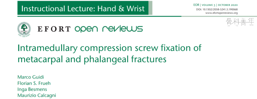 1.顺行关节外技术在中节指骨横形骨折的情况下,PIP 关节难以半脱位。因此,我们建议从中节指骨基底部的尺侧方向斜向插入导丝。随后,插入2.2mm螺钉。
