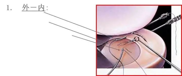 内一外优点:视野好;缝合位置好缺点:神经血管结构损伤的风险;需要后侧切口