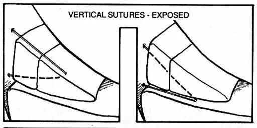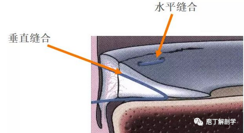 【缝合密度】垂直褥式:每隔5mm一次缝合水平褥式:两针之间间隔5mm