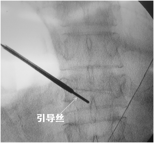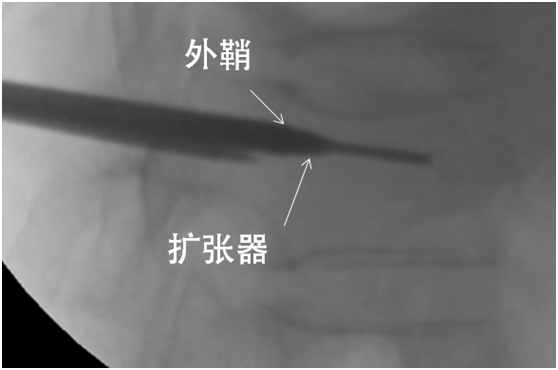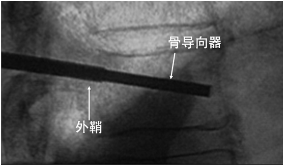 取出穿刺针外管沿引导丝放置工作通道:外鞘过椎体后缘3-5mm。