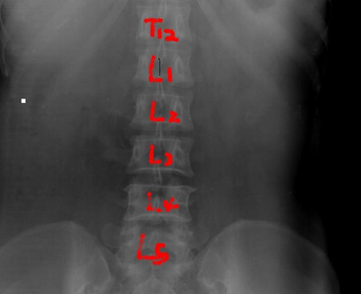 正位:从头往尾,最后一节有肋骨的为T12,从尾往头,两髂嵴联线齐第四腰椎棘突。