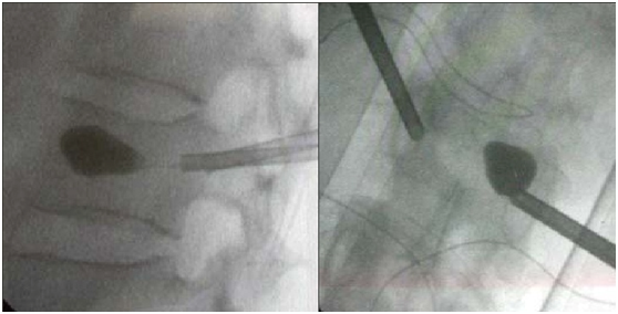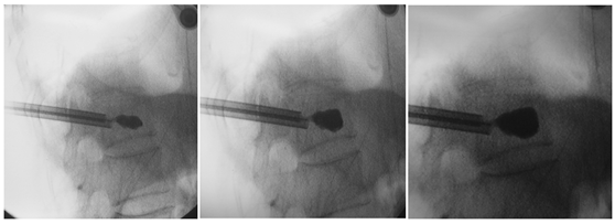 - 刚注入0.2-0.3ml时透视确认骨水泥弥散方向是否安全。