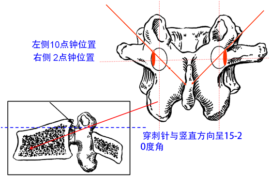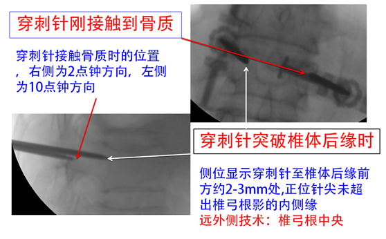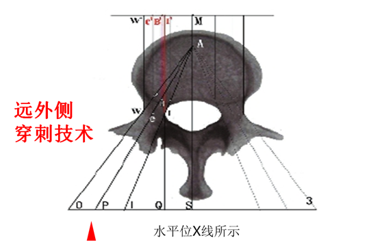 以椎弓根途径为例,皮肤进针点,为穿刺针针尖离椎弓根眼外缘1.5cm左右。