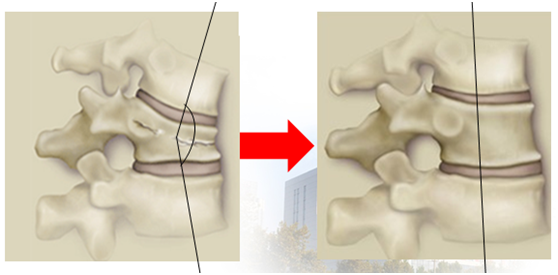 矫正后凸畸形:球囊扩张能支撑起塌陷的椎体,部分地恢复椎体的高度,矫正后凸畸形。