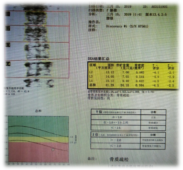 患者李XX,女,75岁,主因“腰背部疼痛半年,加重一周”入院。查体:被动卧位,下肢肌力感觉无异常。腰背叩痛明显。